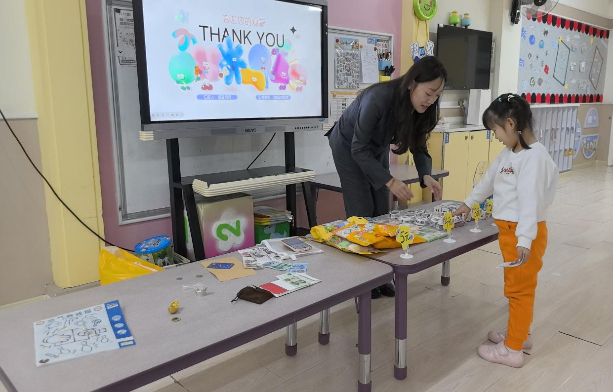 考慮到幼兒注意力特點,主講人王琳還設(shè)計了“錢幣小法官”游戲:她展示不同場景卡片,比如“小朋友幫媽媽保管手機(jī),不隨便點開付款鏈接”“陌生人要借手機(jī)轉(zhuǎn)賬,小朋友說‘要問爸爸媽媽’”,讓孩子們判斷“做得對不對”。孩子們積極舉手,有的站起來模仿卡片里的小朋友說話,有的拉著同伴一起討論,原本抽象的安全規(guī)則,變成了能判斷、能模仿的具體行為,現(xiàn)場笑聲與回答聲此起彼伏,連老師都忍不住加入互動。