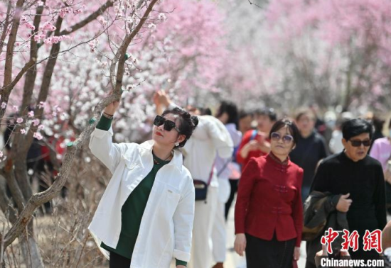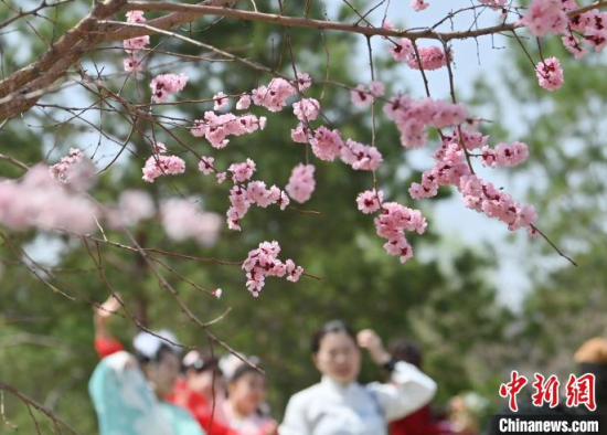 4月23日,吉林長春,市民在櫻花島賞花。隨著氣溫升高,長春街頭及公園里的春花競相綻放,為城市增添亮麗色彩,吸引市民盡享春日美景。中新社記者 張瑤 攝